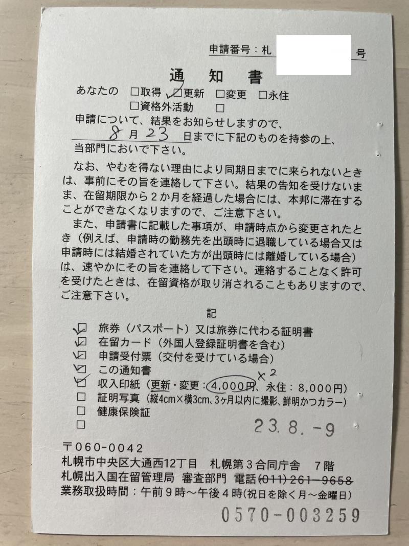 在留資格「技能」の更新許可が2名分おりました。おめでとうございます!!