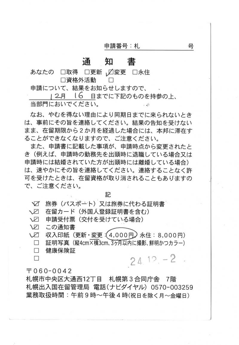 【在留資格変更】【Change of Residence Status】