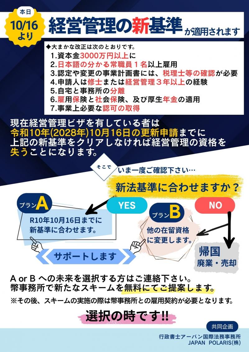 【お知らせ】在留資格 経営管理許可基準改定について(令和7年10月16日施行)