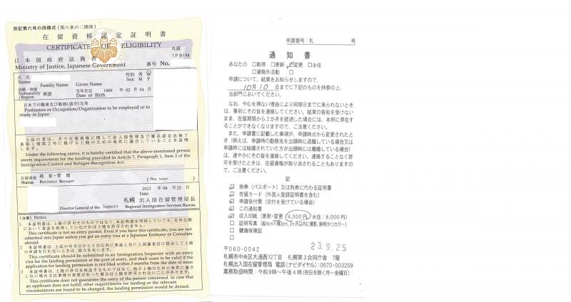 経営管理1名・認定証明と高度人材1号1名の変更許可がおりました。おめでとうございます!